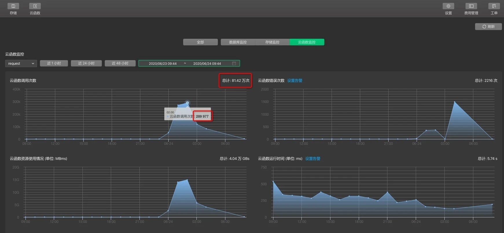 很明显是云函数被人破解了直接用脚本跑出来的,正常人访问小程序页面不可能在几个小时内达到这么81.42万次这么多!!!