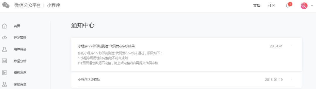 审核失败: 1:小程序可用性和完整性不符合规则:<br>(1):页面运营数据不完整,请上架完整内容再提交代码审核<br>