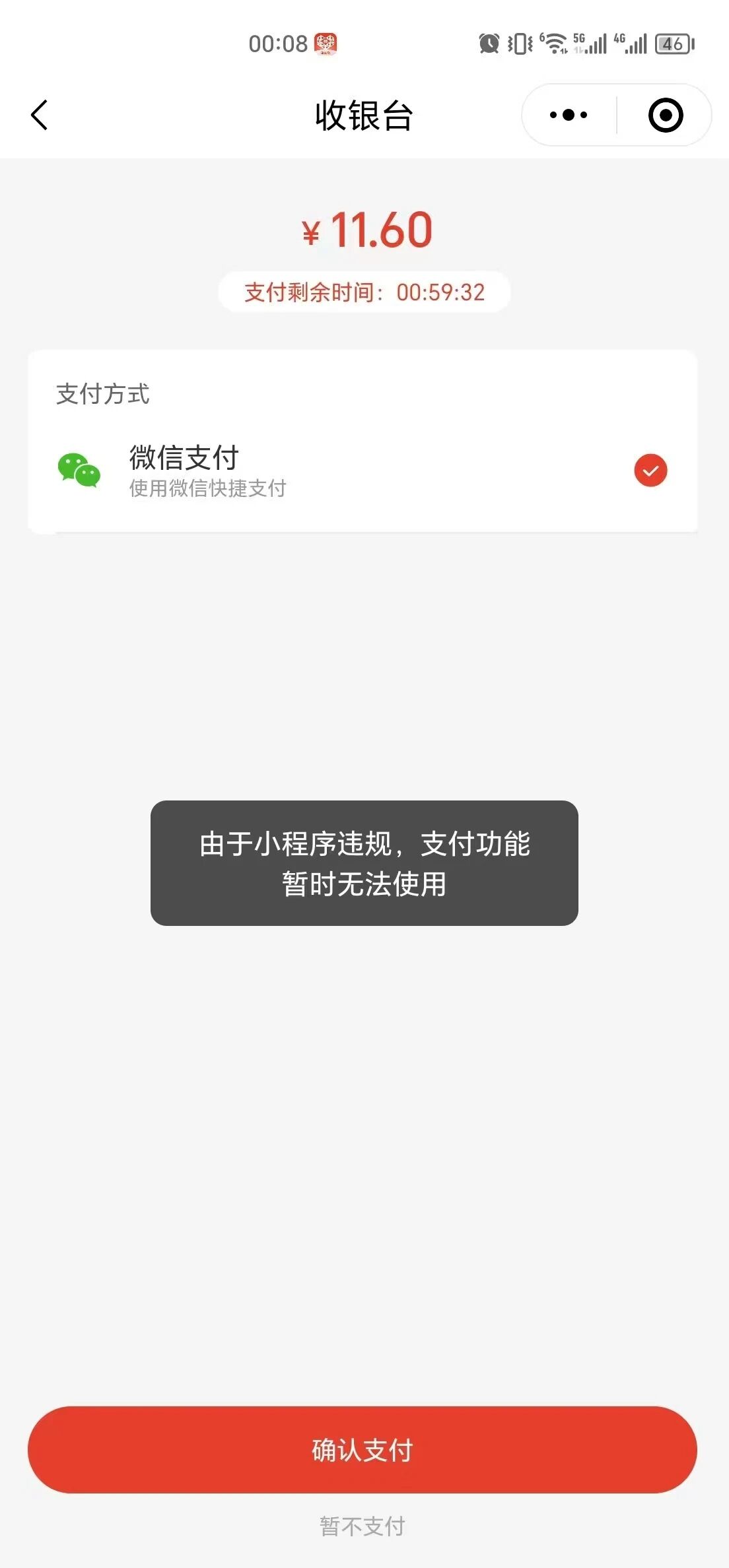 小程序刚上线,提示“由于小程序违规,支付功能暂时无法使用”,请问如何处理?