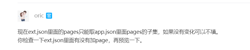 我想问下我在ext.json文件需要配置pages 因为要通过字段判断哪个页面为首页加载,可是配置了,我的分包文件却打不开 一直报路径错误 只有把ext.json里面的pages删除掉 才可以打开我的分包文件