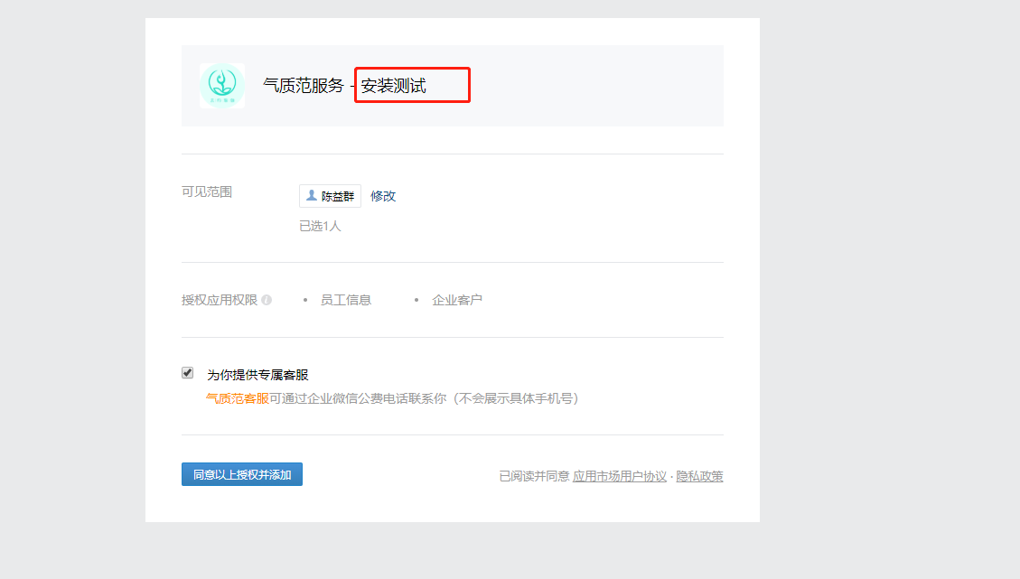 你好,安装授权是通过第三方应用授权链接安装的话,需要看下配置的授权模式是正式授权还是测试授权,如果是配置的测试授权,那就是测试安装的