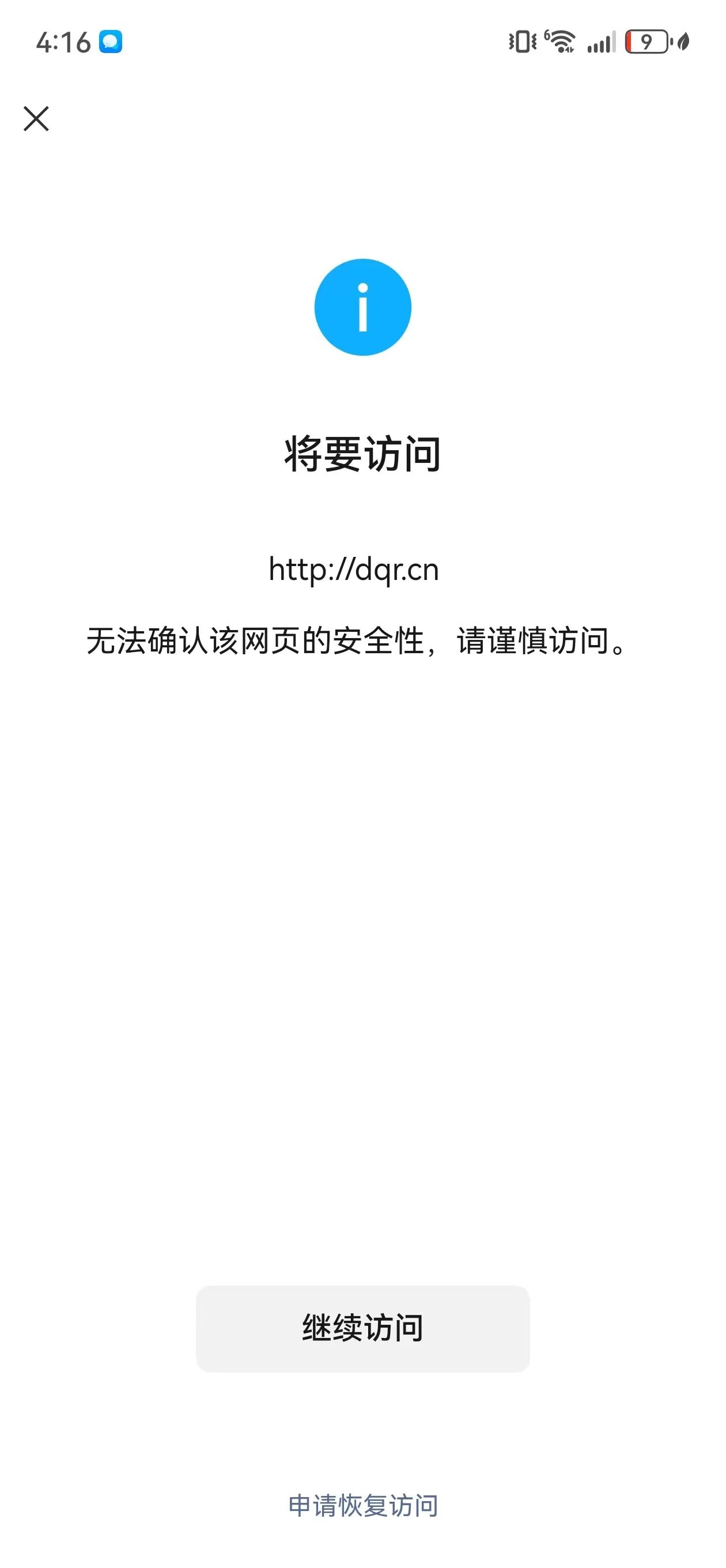 我司域名【dqr.cn】,从微信端访问时提示”非微信官方网页,请确认是否继续访问”