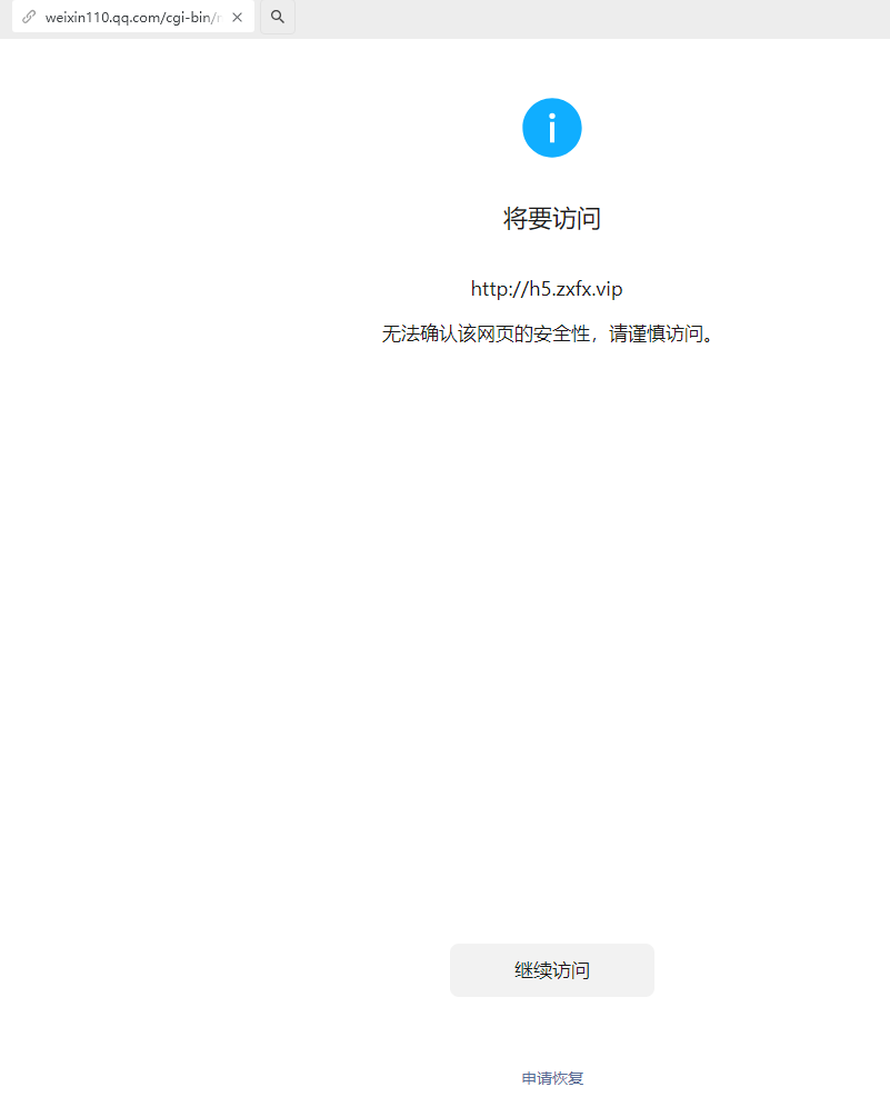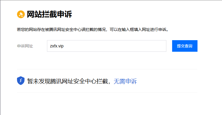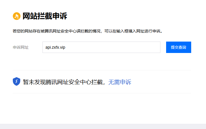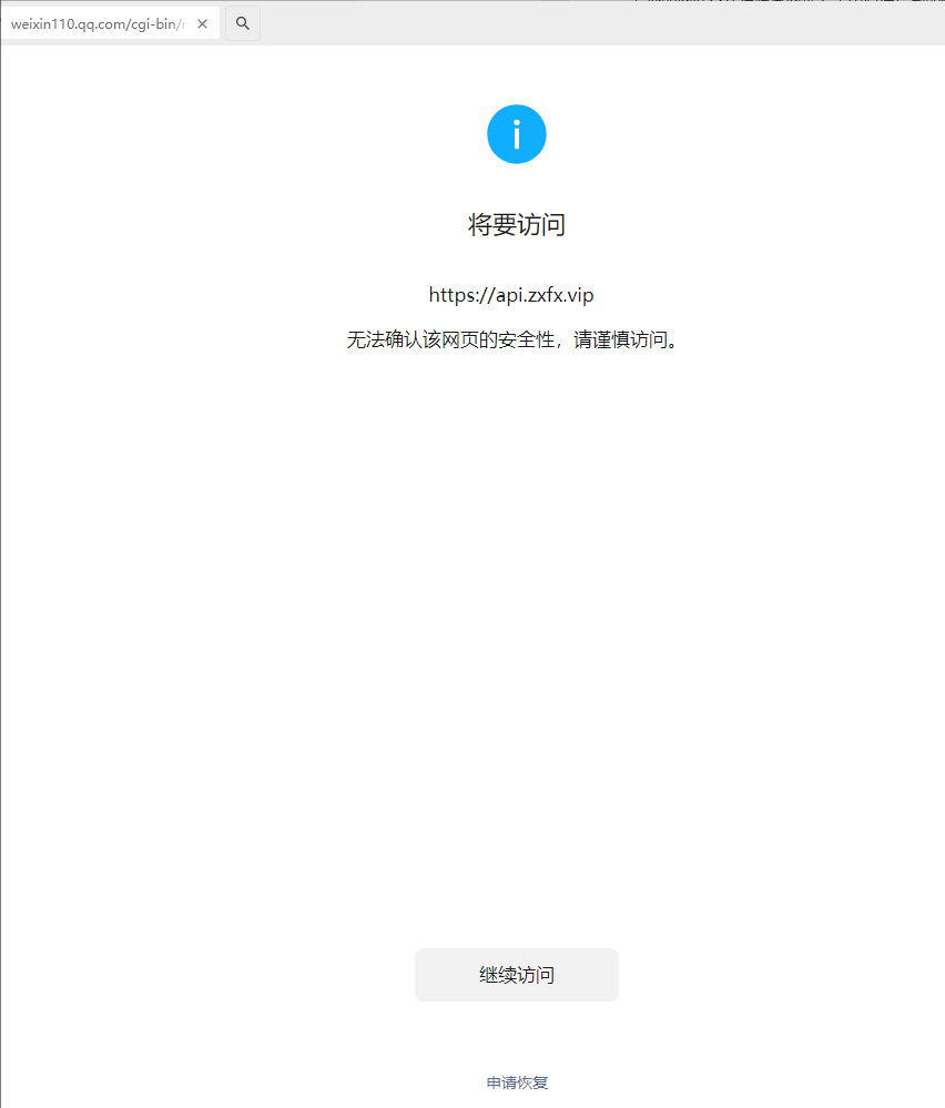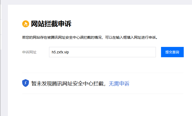 业务访问域名 https://h5.zxfx.vip和 https://api.zxfx.vip 浏览器访问正常,我是网站开发者,微信访问网站出现“无法确认该网页的安全性,请谨慎访问”,经检查网页里没有不安全的内容,也在https://urlsec.qq.com/complain.html检查过,无任何不良和隐患。也多次申请过,没结果,请请核实后帮忙解除拦截,谢谢!十万分感谢。