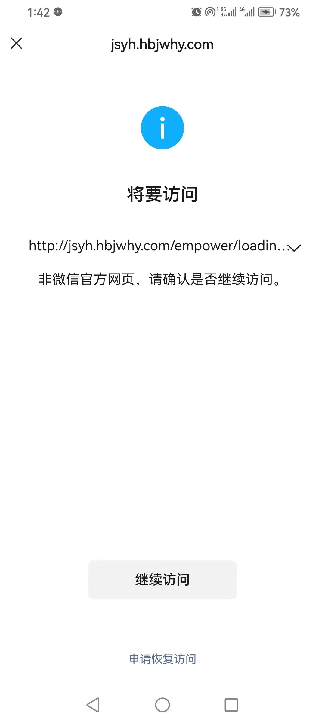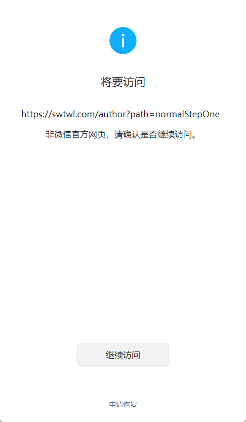 打开页面的时候,提示“非微信官方网页,请确认是否继续访问。”,如何解决?
