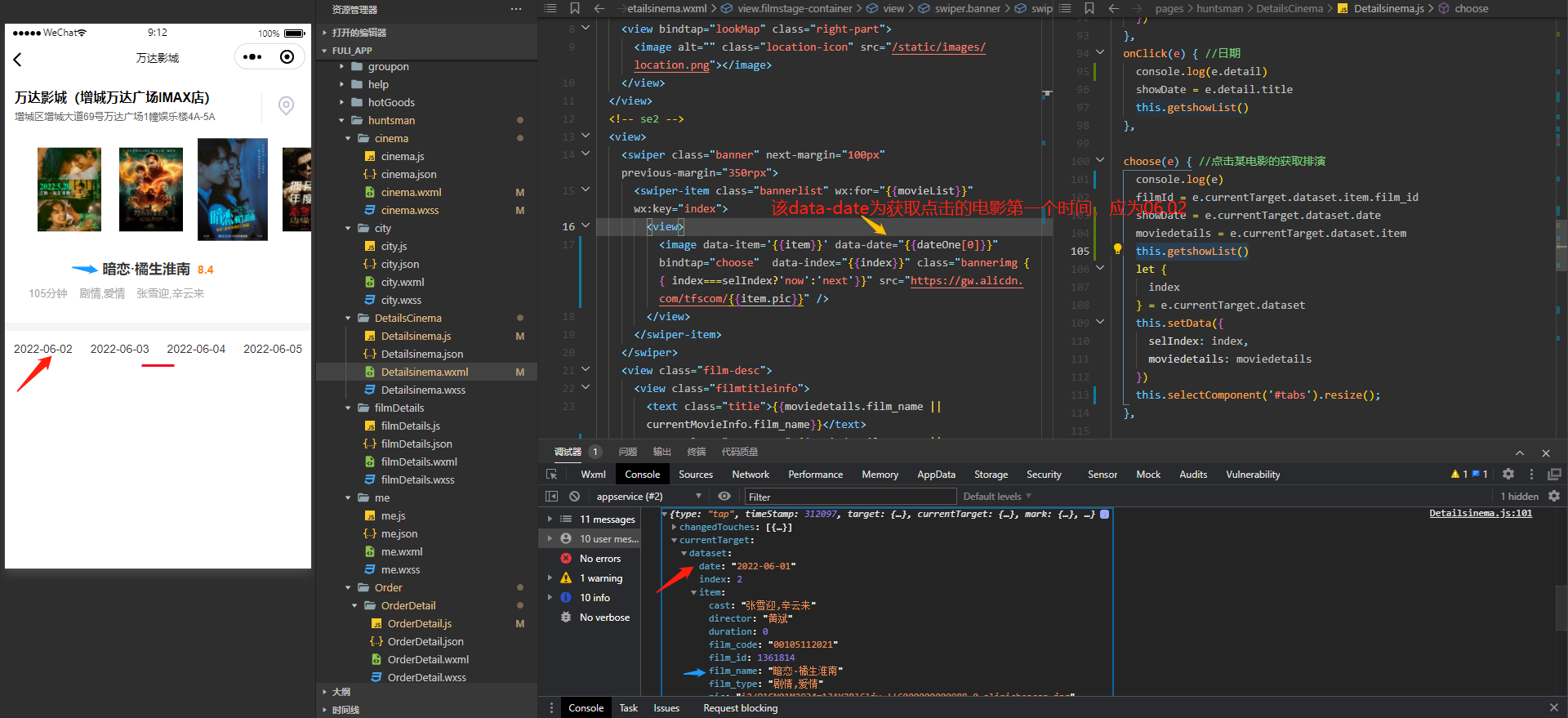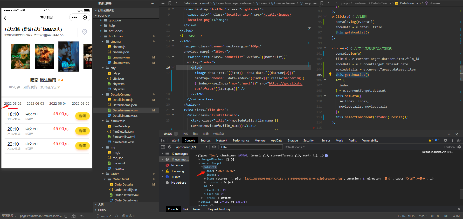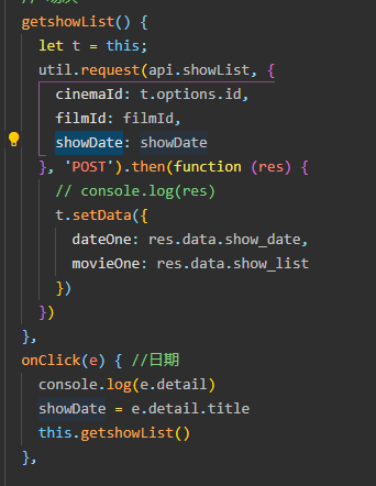 页面进入时默认获取第一个电影的第一个日期,从而获取对应排片时间,