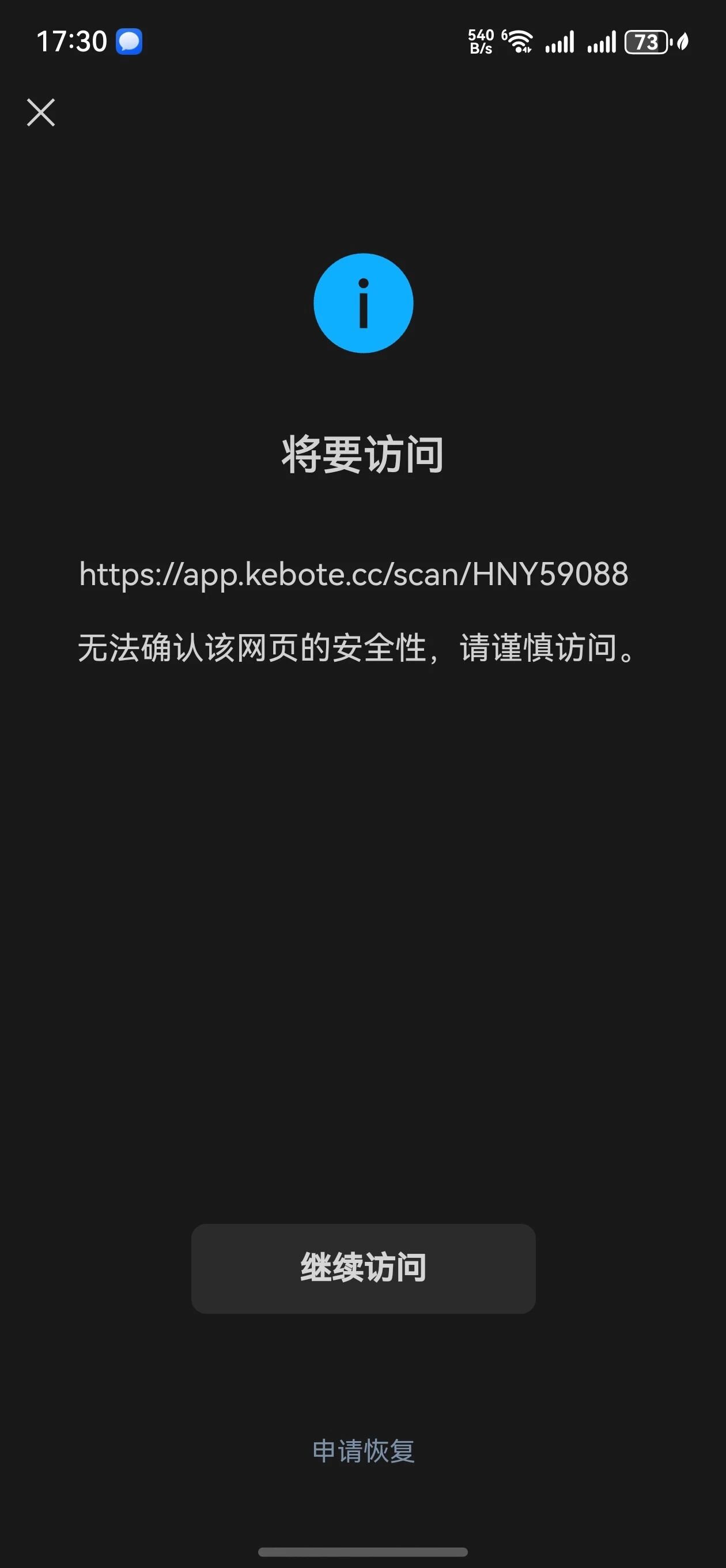 已经正常配置普通链接二维码地址,然后微信扫描二维码打开时提示无法确认该网页的安全性,请谨慎访问,请问这个要怎么处理
