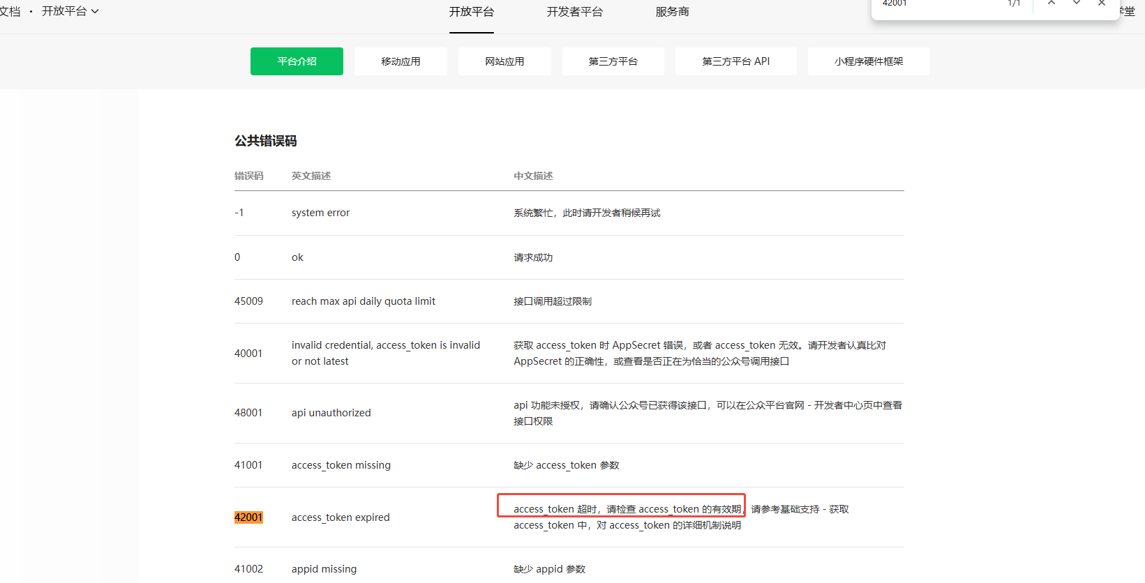 “42001”是实际使用的ccess_token 超时了,请检查 access_token 的有效期