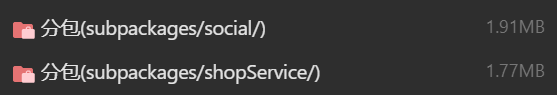 subpackages/shopService和subpackages/social分包的大小分别为: