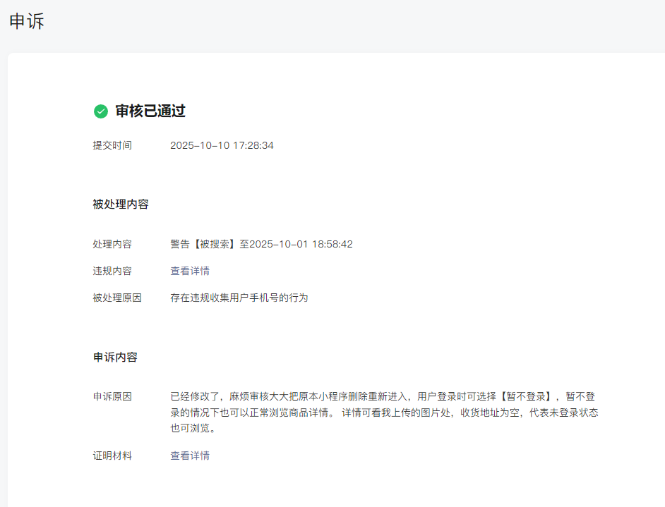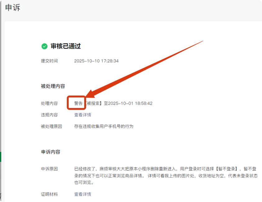 国庆之前我已经改好了,但是审核员还是判不通过,假日后第一时间申诉已经通过,结果搜索还是被限制,还找不到人,真的是无语了。