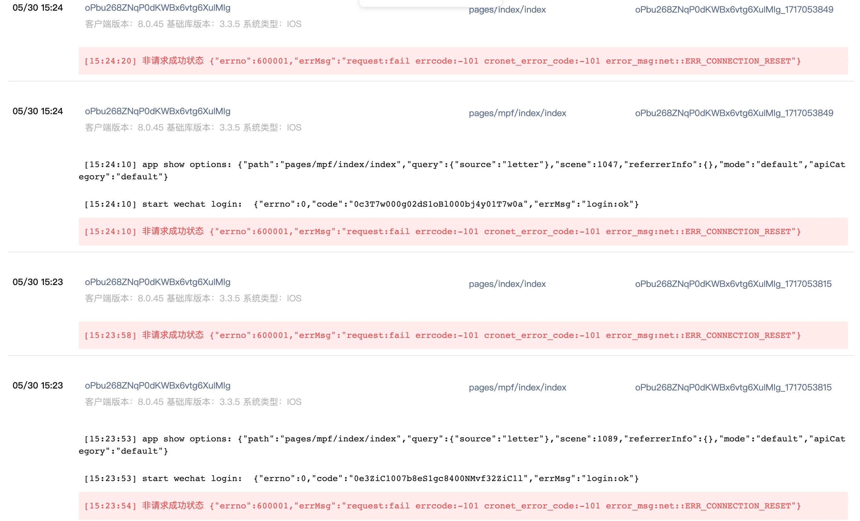 新用户第一次打开小程序的时候,经常会报错,ERR_CONNECTION_RESET,但是重新进小程序几次后就会正常。