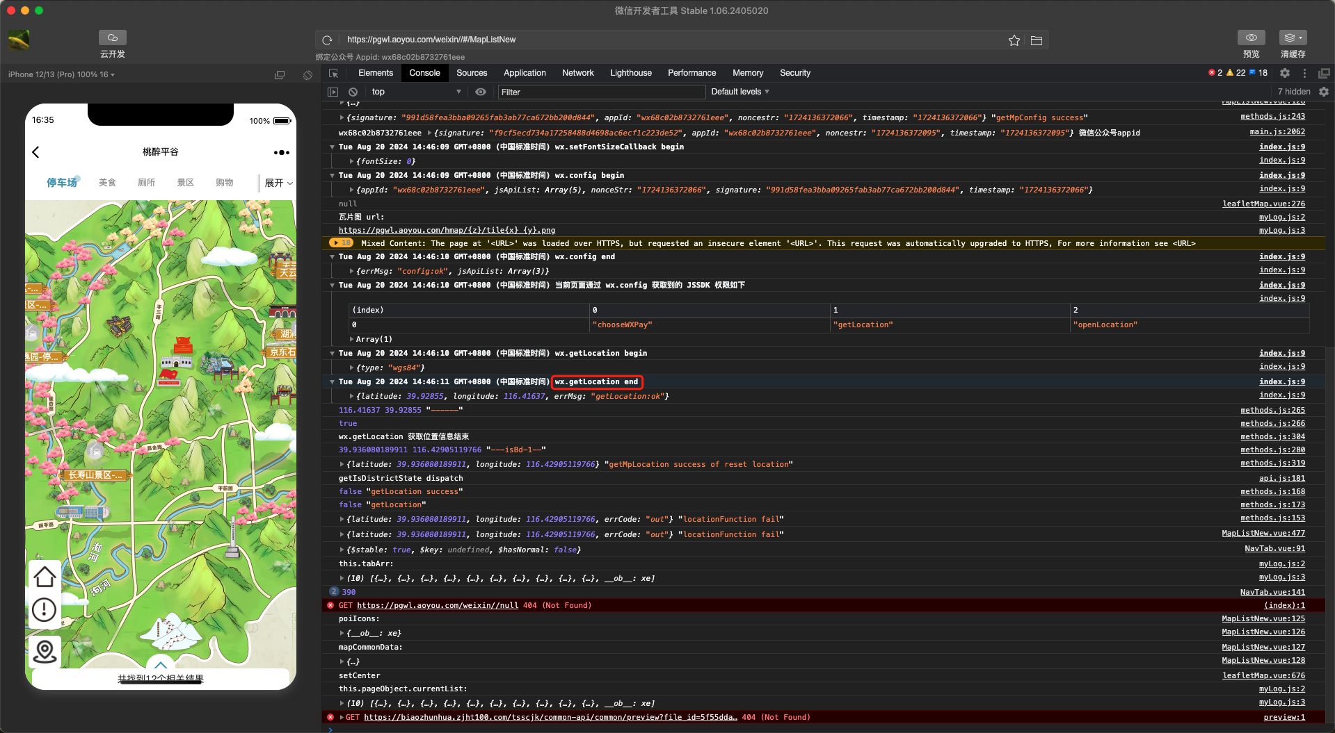 微信小程序的 web-view 页面用到了 wx.getLocation,在 web-view 调试器的打印信息里,有 wx.getLocation begin,就卡在这儿了。getLocation 的 success、fail、complete 回调函数都没执行。如果我在公众号网页项目里打开这个 h5 页面,有 wx.getLocation end,并且成功了。哪位老师知道微信开发者工具小程序项目里,为什么没有 wx.getLocation end?