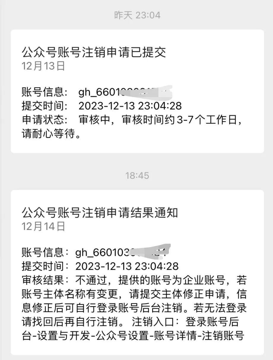 我提交了【营业执照+申请书(盖公章)+对公账户注销材料】,第二次还特意补充了我的情况,都不行,不知道咋回事。