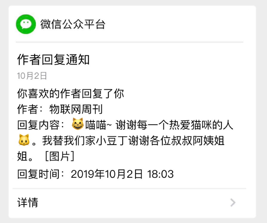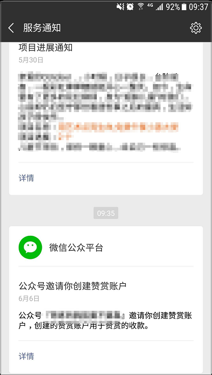 已关注公众号:收到回复的赞赏用户在「订阅号消息」中收到通知,点击后,将在公众号与用户的会话中展示内容。如果回复是「图片」+「文字」,用户将收到两条消息。