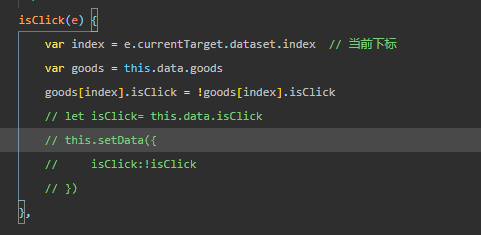 let str = `goods[${index}].isClick` this.setData({ [str]:!goods[index].isClick })