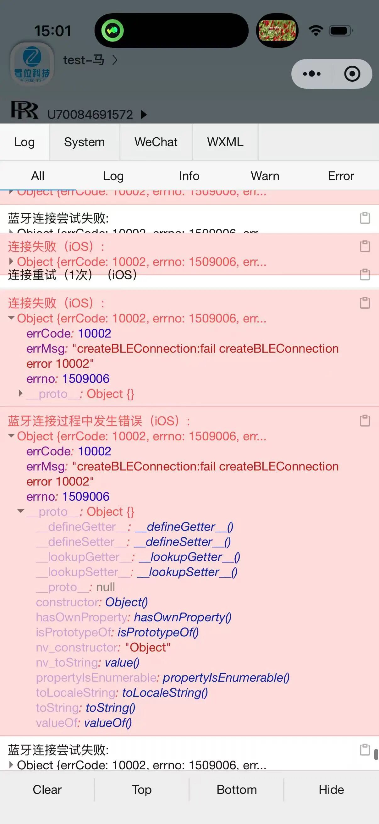 ios在微信原生代码怎么配置蓝牙啊有没有参考反复报错?