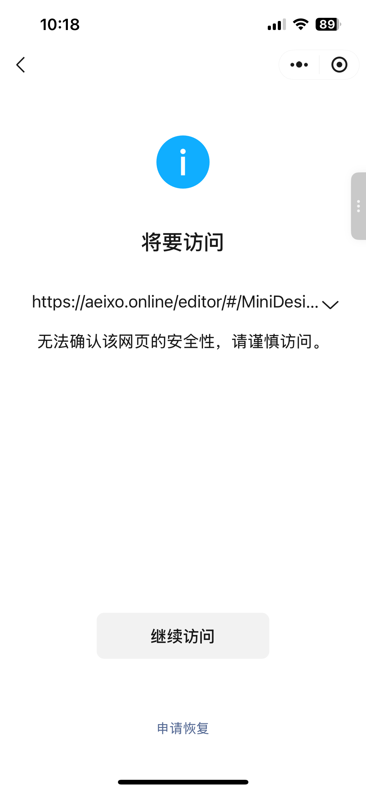 您好,https://aeixo.online/,域名备案是正常的,浏览器访问正常,我是网站开发者,微信访问网站出现“无法确认该网页的安全性,请谨慎访问”,网页里没有不安全的内容,且已进行过备案,请核实后帮忙解除拦截,谢谢。
