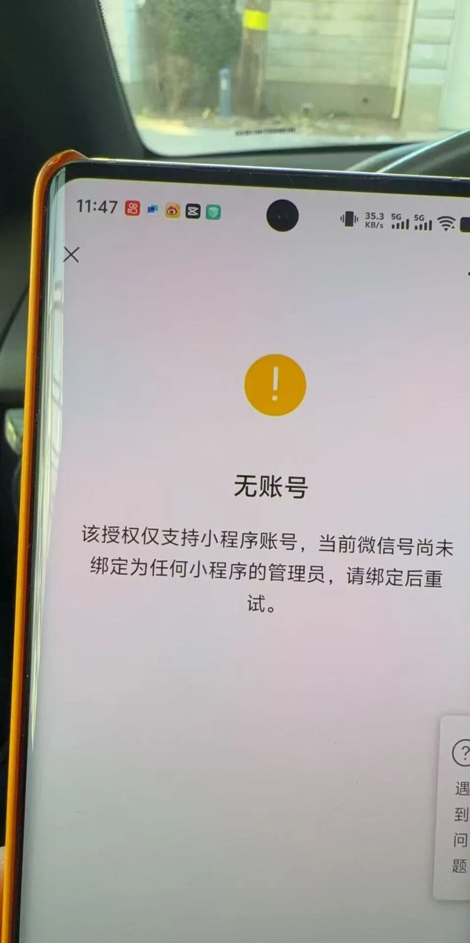 在企业微信后台建立应用,创建小程序时,扫描二维码进行建立绑定,扫描后提示“无账号”!