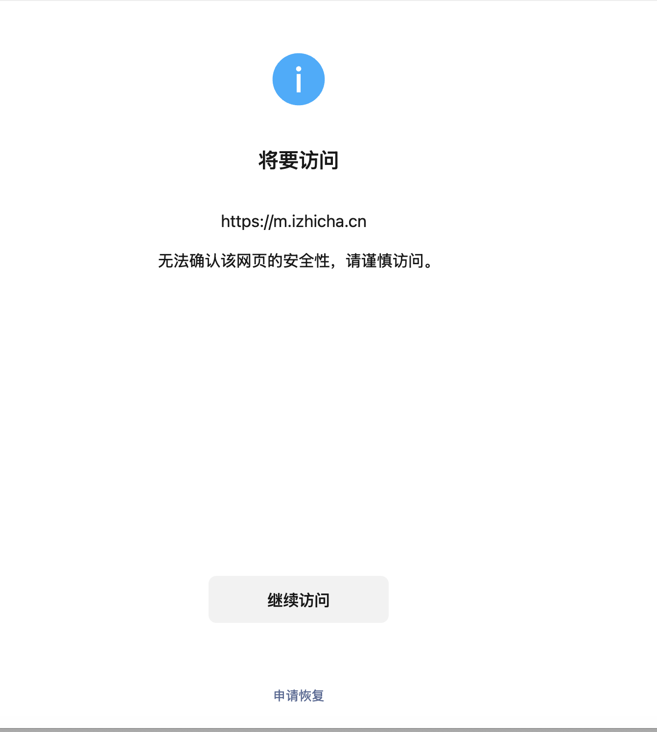 你好,经核实域名izhicha.cn下的链接【foo://https://m.izhicha.cn/】违反了《微信外部链接内容管理规范》,我们无法恢复微信内直接访问的服务,请知悉。
