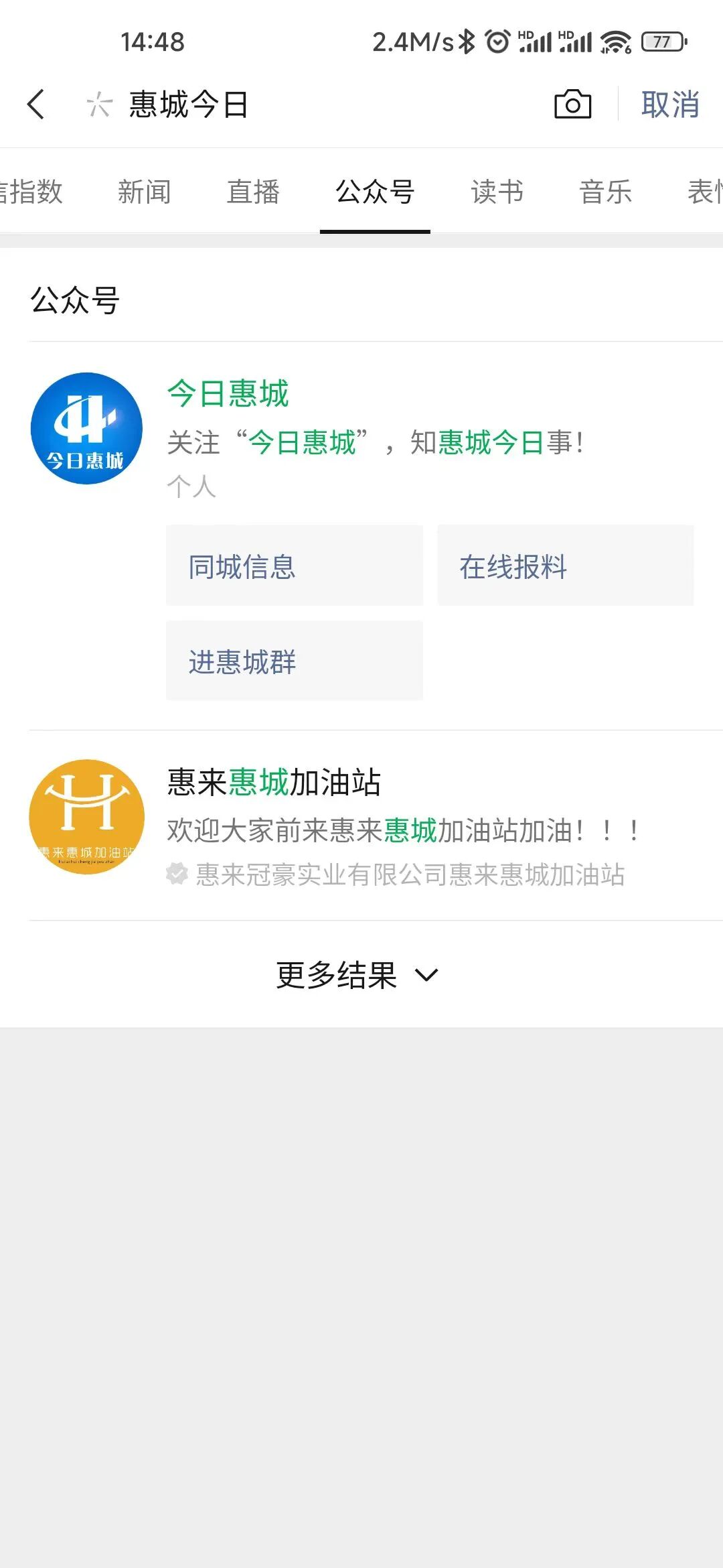 【公众号】: 惠城今日事 始ID gh_a2042fc73552 一共才四个结果, 我的都会给折叠。