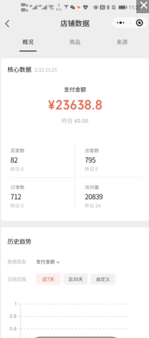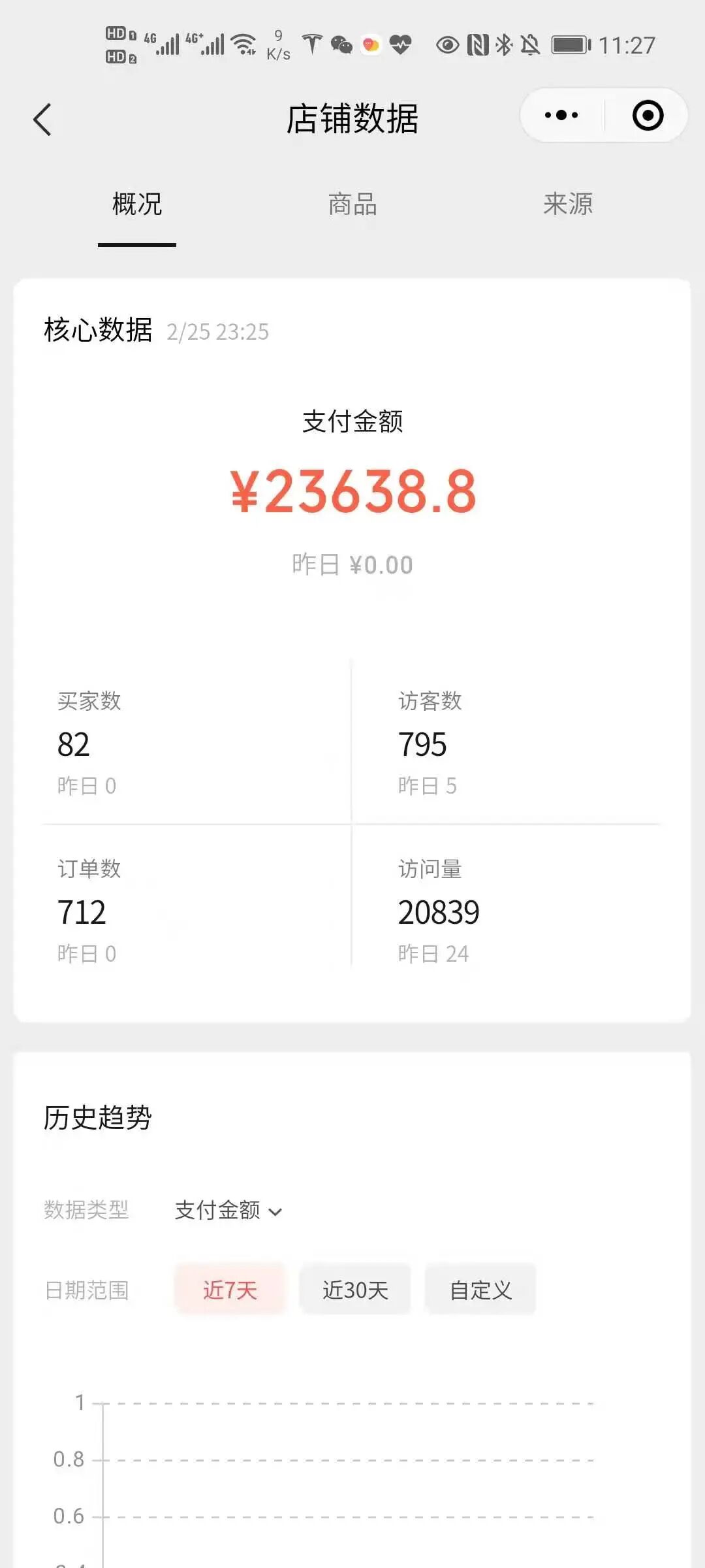 上面的数据完全对不上,真的卖的这么好?按照题主说的,总共才做了两天,昨日的买家数,访客数,订单数,访问量的数量完全达不到图中的总量,底下的历史趋势是近七天的支付金额,按照你的23630.8元,曲线图应该不会停留在0吧,连1都没超过,有点怀疑是不是。。。