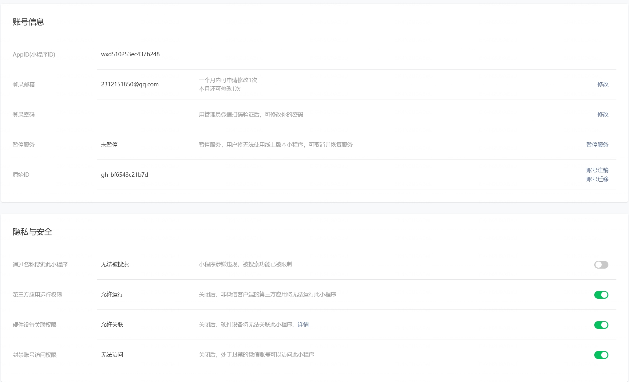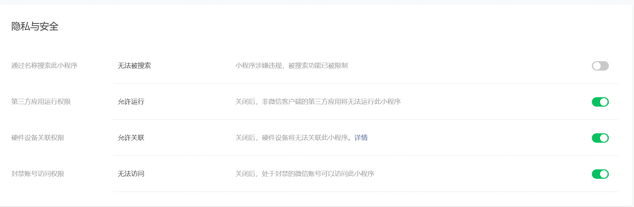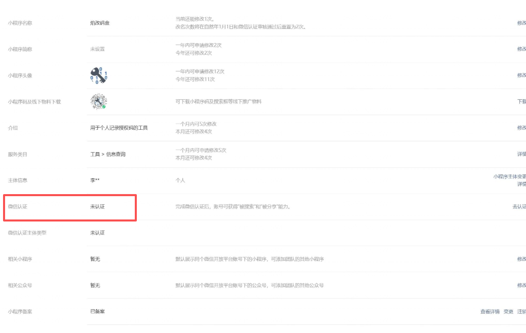 我发布的个人备案小程序,备案审核通过,也发布了线上版本,但是账号设置里面无法开启通过名称搜索此小程序,通知里面也没有提示违规的内容