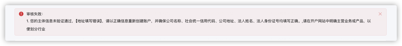 另外主体认证的时候地址信息和你们服务人员确认过没问题。重新认证主体我再花300,就一个地址,你们这流程傻逼吗