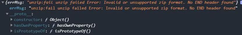 unzip:fail unzip failed Error: Invalid or unsupported zip format. No END header found