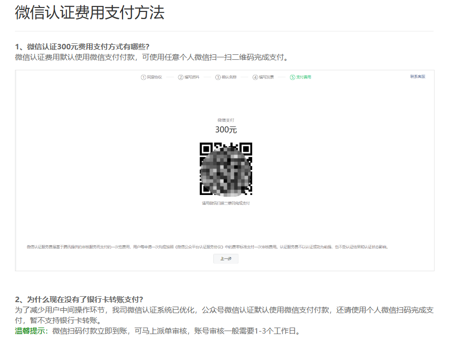年审仅支持个人微信扫码支付300元