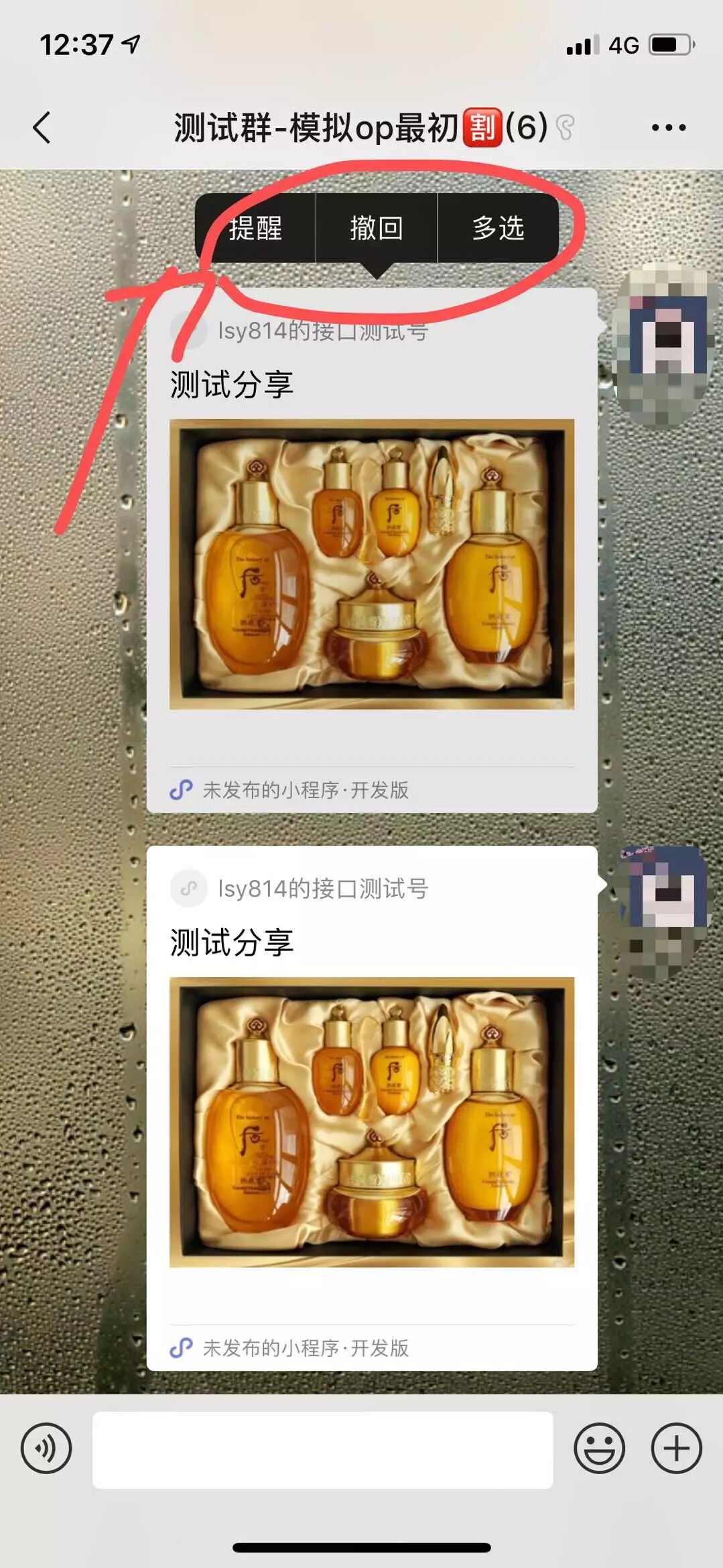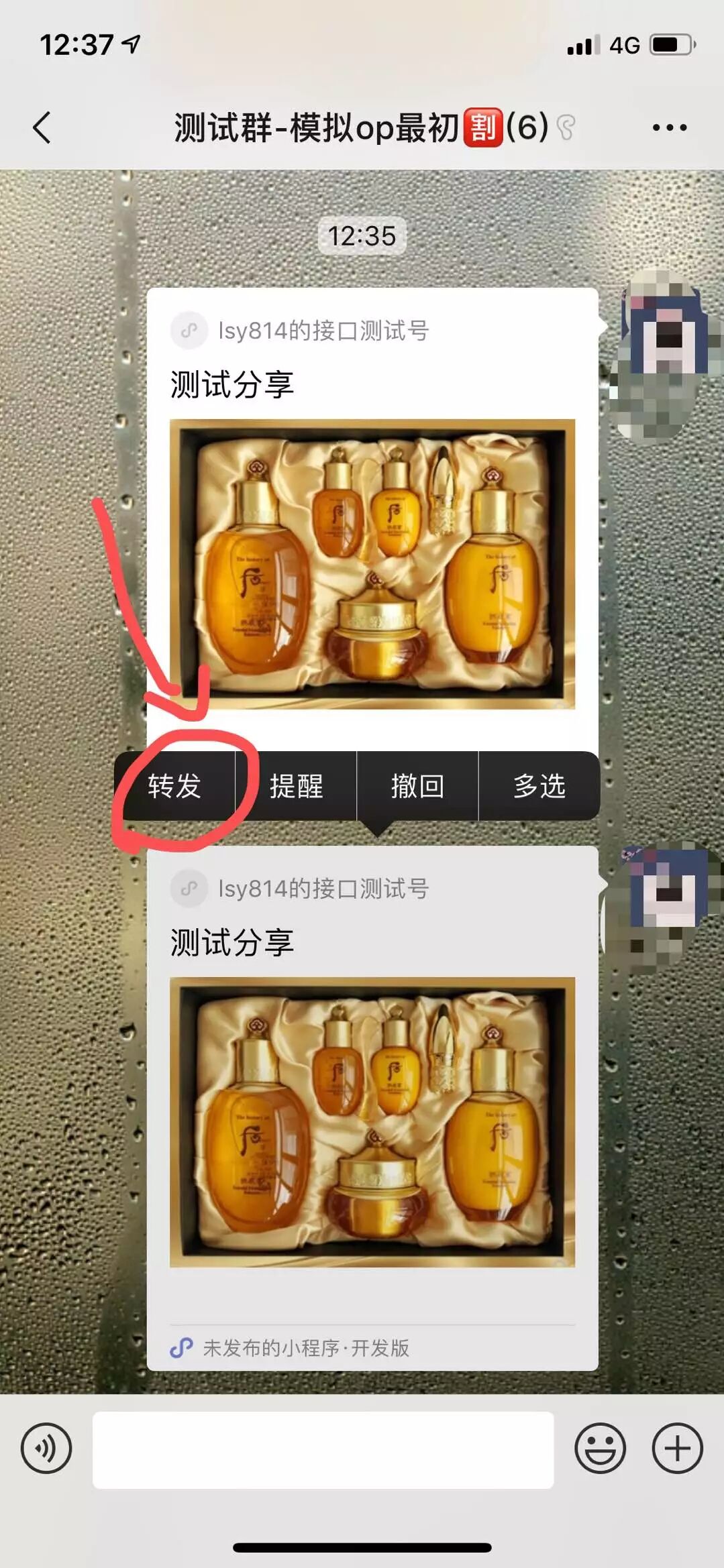 3. 能否提供withShareTicket为true,同时群聊中卡片依旧含有“转发”按钮的解决方案
