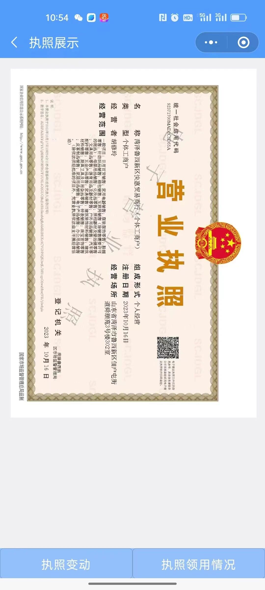 你好,菏泽鲁西新区快惠贸易商行(个体工商户),请重试