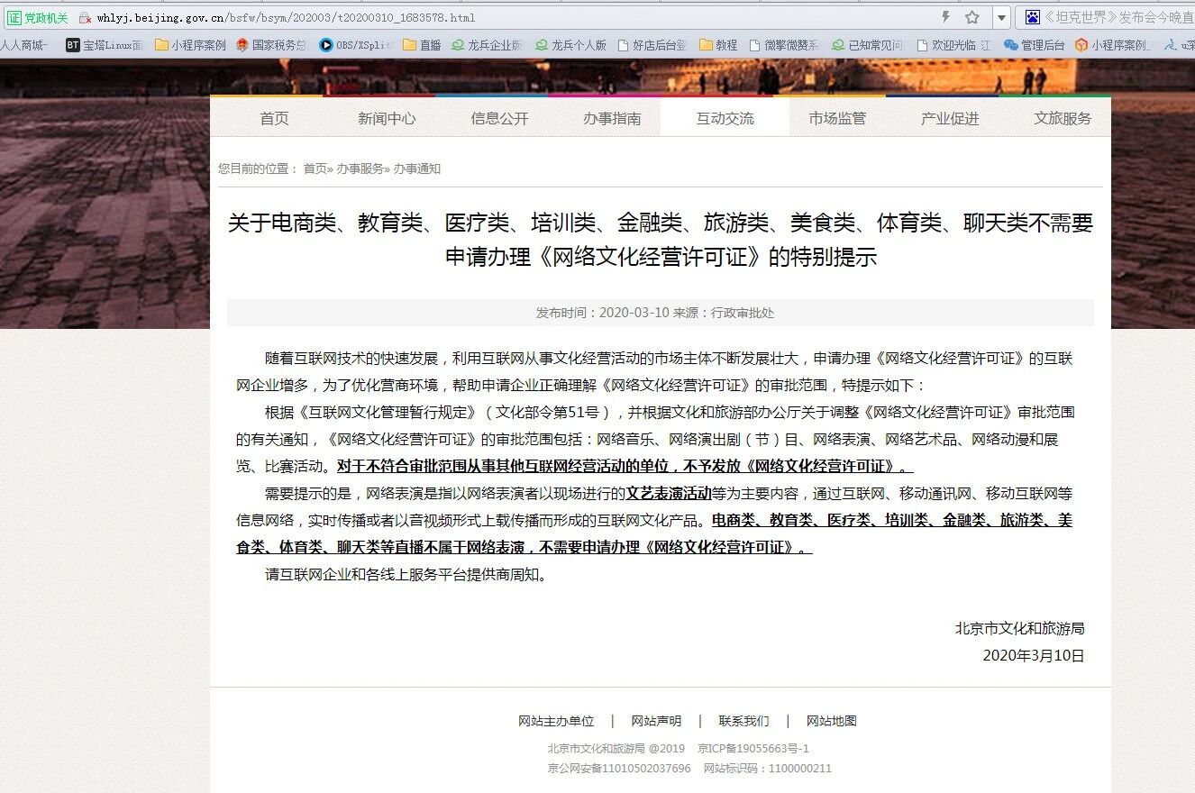我们小老百姓做个小程序,并不需要这些证书,政府也不会给办理的,希望微信管理员能给反馈一下,电商类、教育类、医疗类、培训类、金融类、旅游类、美食类、体育类、聊天类等直播不属干网络表演,不需要由造办理《网络文化经营许可证》。