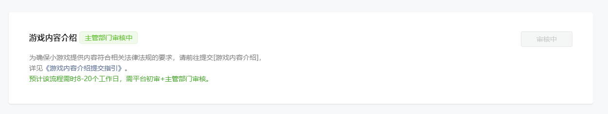 审核好久,游戏内容介绍是6月26号提交的,今天已经7月18号了,不是说好8到20个工作日吗?现在都已经超出了。感觉主管部门是不是没有看到啊?