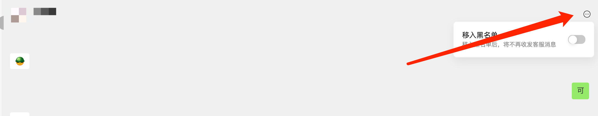 PC客服点右上角的三个点可以拉黑