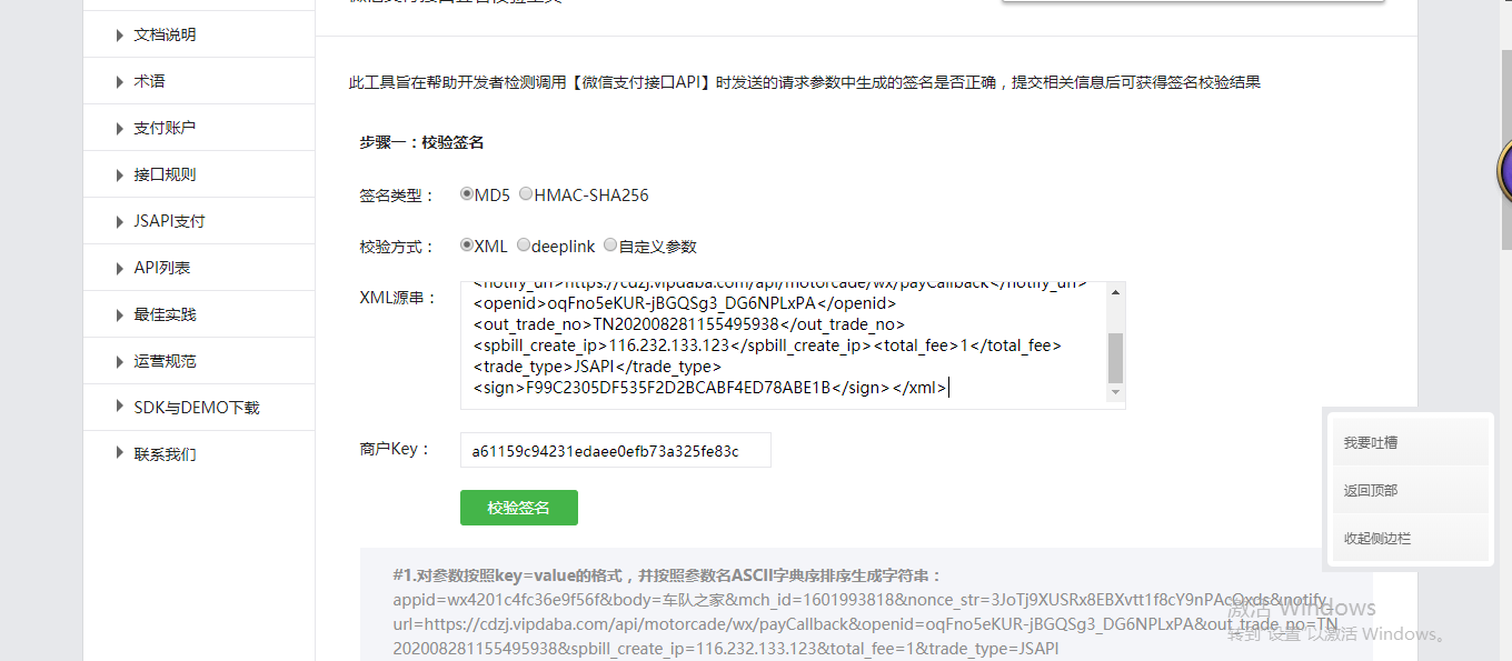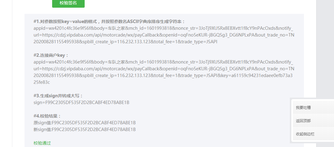 但是到工具 https://pay.weixin.qq.com/wiki/doc/api/jsapi.php?chapter=20_1 是效验通过的