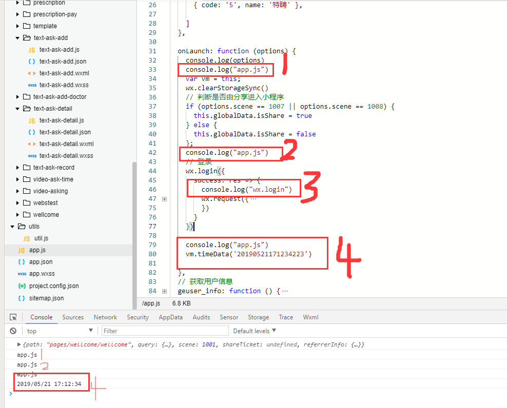 应该会打印出wx.login,可是没有打印,没有发起请求