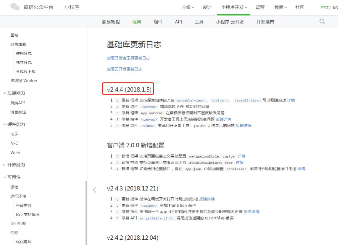 | 小程序 | Bug | 基础库更新日志 | 客户端 | 7.0.0 | 2.0.0 |