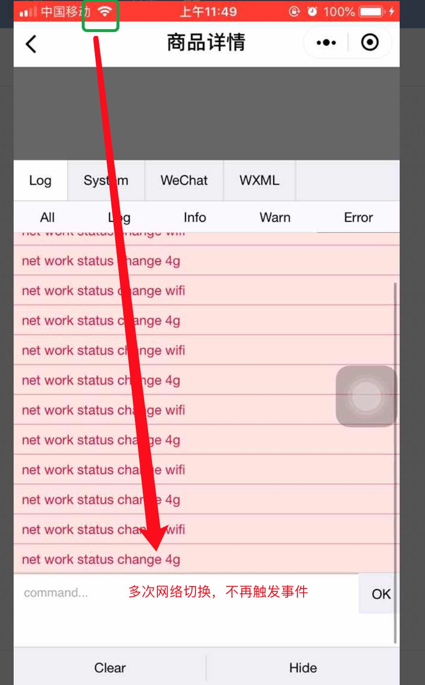 频繁多次手动进行wifi和4g网络切换,会导致onNetworkStatusChange事件不触发,onshow或者把所有网络关闭再开启恢复正常,但再次频繁切换又会出现类似情况。