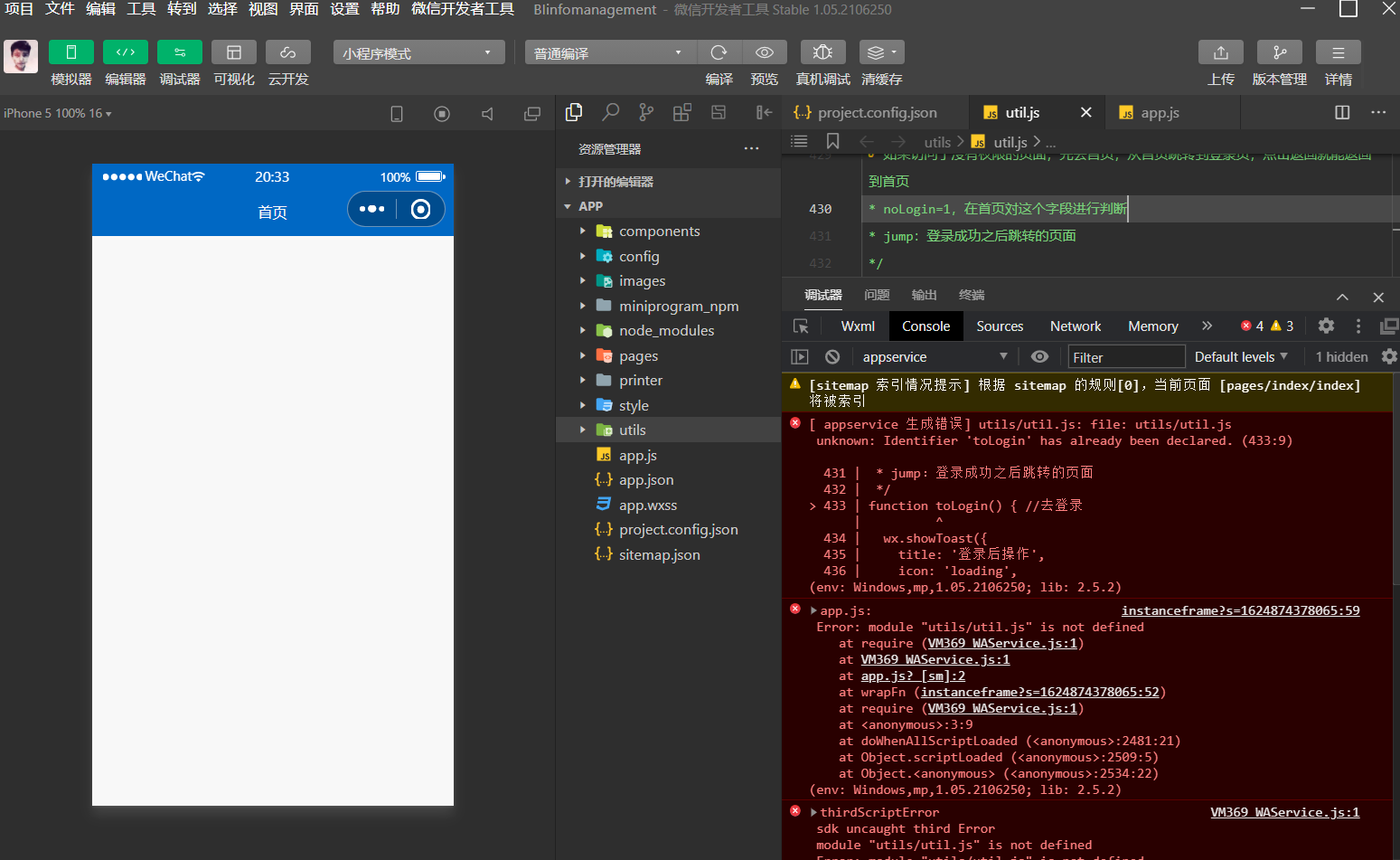 麻烦检查一下 utils/util.js 代码里是否重复定义了两个 toLogin ?