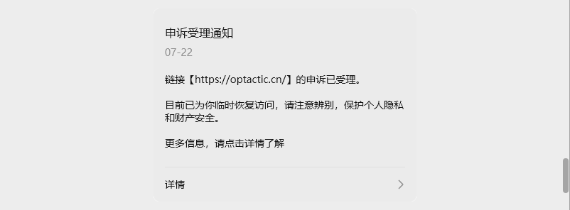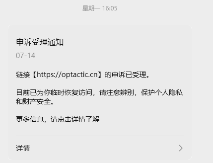 在腾讯安全-网址安全中心这里,已经申诉通过过解除了风险。在微信里也申诉过了。