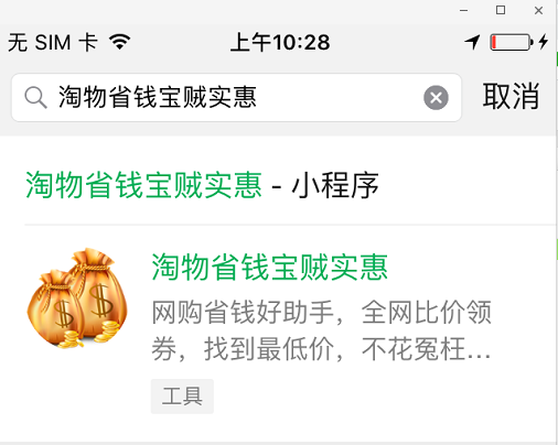小程序名称为:淘物省钱宝贼实惠
