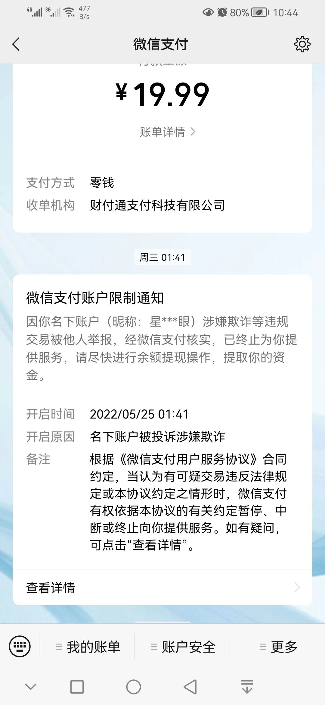 微信提示我名下的另一个账户涉嫌欺诈行为违规,导致我现在我微信不能支付,我很迷,我什么都没做,我另外一个账户已经很久没用,我的个人信息被泄露,那个账号被我一个熟人给盗走了,后来我也没有用这个账户了,我不知道他用这个微信进行了诈骗什么活动,现在我这个账号也不能进行支付功能,就算我无语,他犯错我背锅,现在也无法解触支付问题
