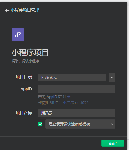 提供使用腾讯云nodejs快速启动模版来创建项目的选项
