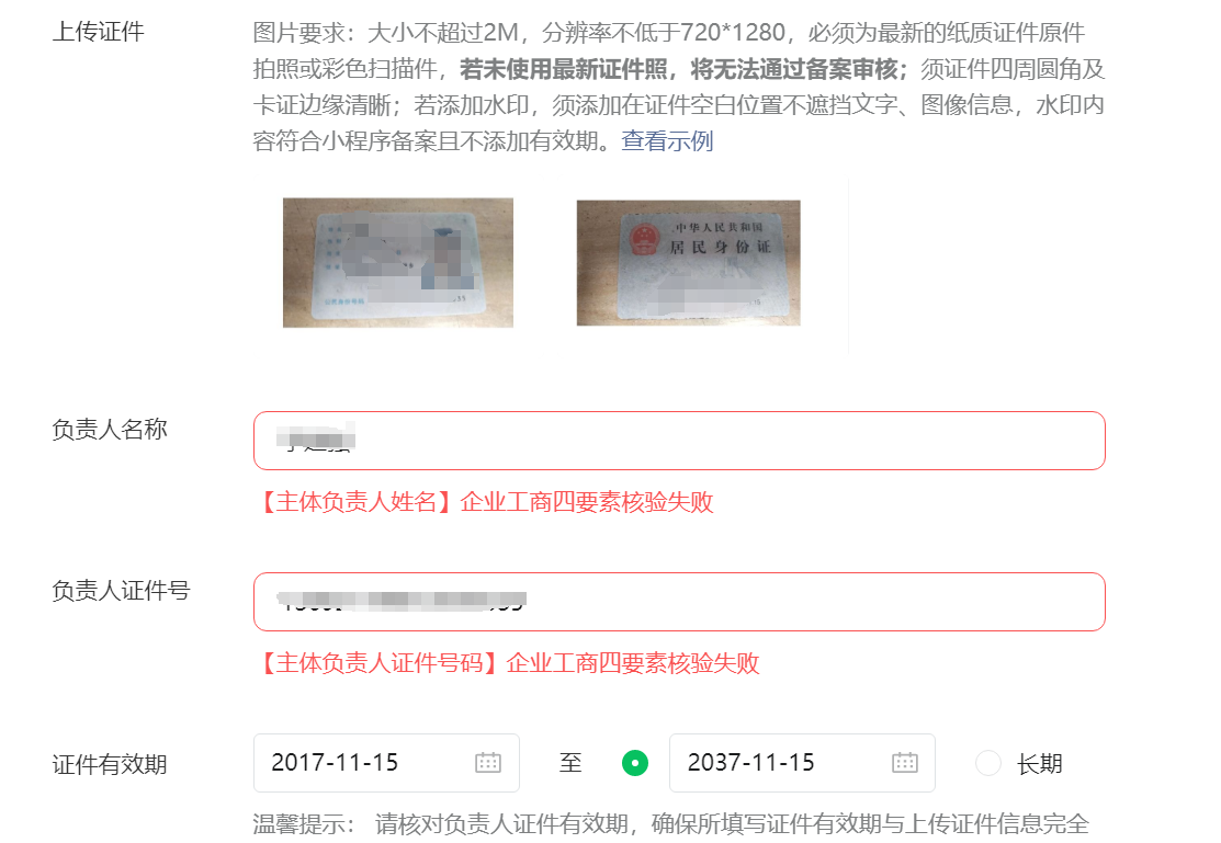 提交小程序备案的时候,负责人是填写的是法人的。一直出现这个,怎么解决呢,执照是新注册,去年9月份注册的。是工商的数据没有同步过来还是?有点着急,帮忙看一下怎么解决,提交不了备案,小程序一直使用不了。