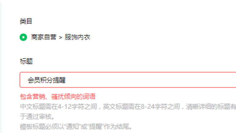 我就想公众号发消息提醒下会员积分、券发生变更了,都不行,用 会员积分提醒,说 含营销词语,你告诉我怎么定义?