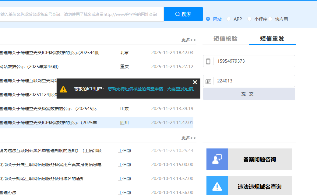 您好,山东鲸洲海洋食品有限公司小程序备案时,负责人收到工信部验证短信,但是超时忘记验证了,工信部那边进行短信重发,提示暂无待短信核验的备案申请,无需重发短信,正常情况应该被打回重新提交备案,但是小程序这里目前还是显示备案审核中,请客服帮我处理一下,我这边重新提交审核[抱拳][抱拳][抱拳]