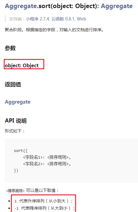 1. 走微信客户端调云函数传参 ,里面有sort字段,是对象的形式 {two: -1, sort: -1}