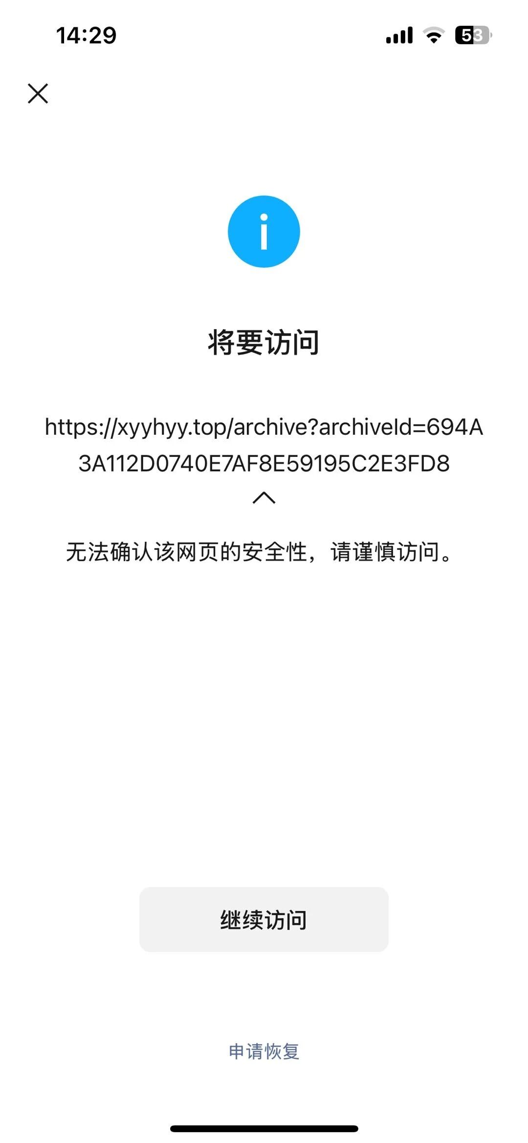 对于生成的二维码,扫码后提示“无法确认该网页的安全性,请谨慎访问”,麻烦帮助审核解决下