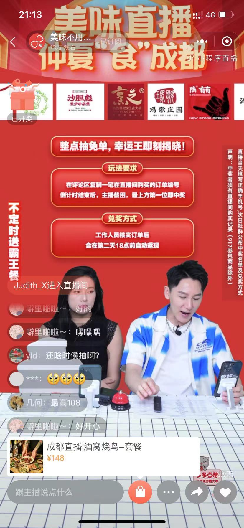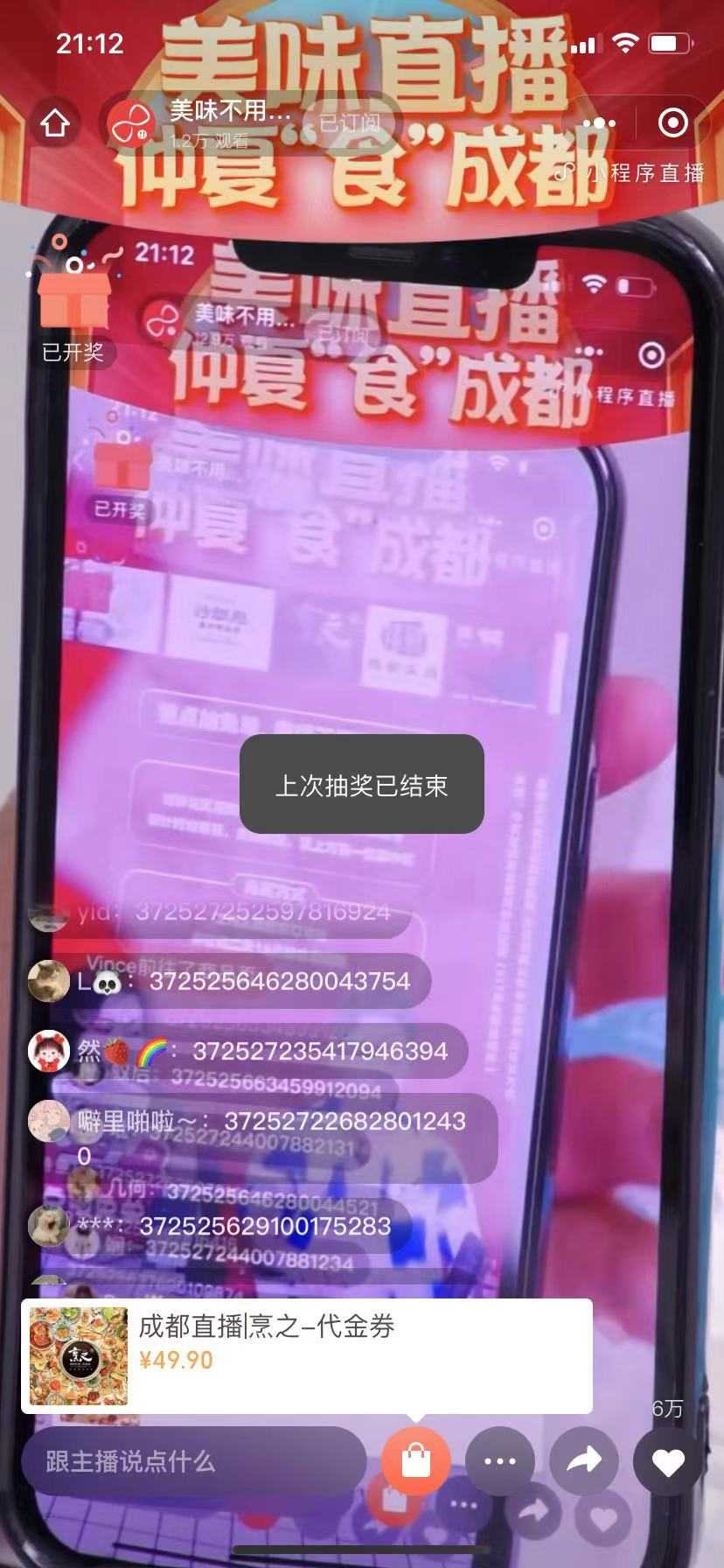 8月25日21点12分 美味在成都的直播间,不同用户看到的“观看数”和“点赞数”不同。