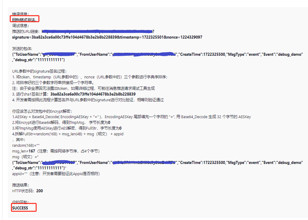 为什么这个返回了 success 或者 SUCCESS 都提示 回包格式非法,那回包格式到底是什么
