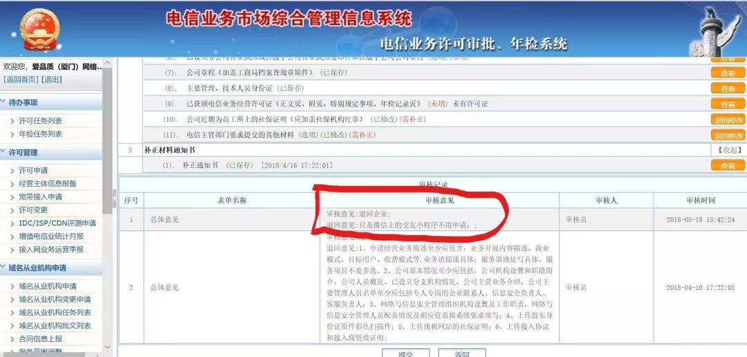 红线圈出的是电信主管部门对申请电信经营许可证的审核意见:只是微信上的交友小程序不用申请。